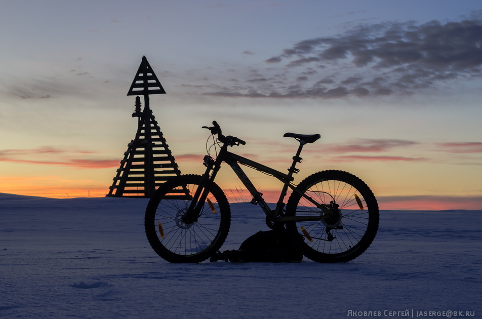 Необычное средство передвижения для северной зимы, но наст есть, он плотный и хорошо держит широкие, да еще подтравленные колеса моего байка. Но в начале зимы такой фокус не выйдет.
