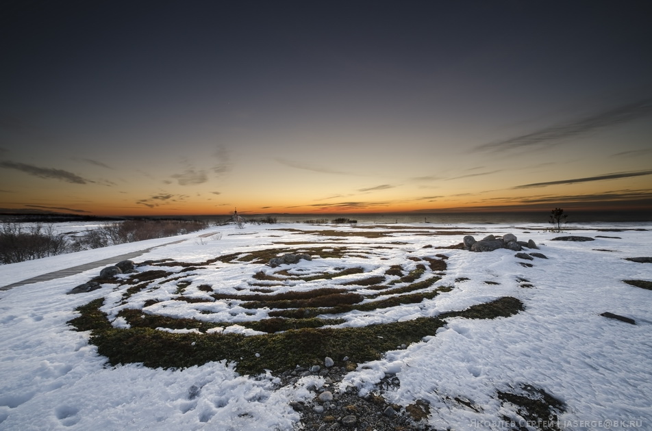 На острове снег почти не задерживается. Как гости обглоданных животных выглядывают валуны и хребты лабиринтов.