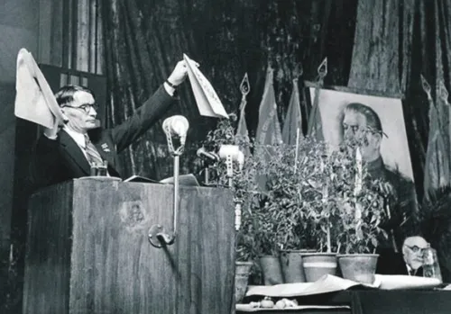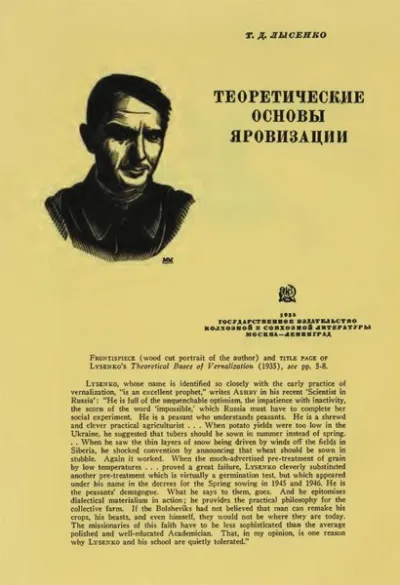 И он олицетворяет диалектический материализм в действии; он обеспечивает практическую философию колхоза. Если бы большевики не верили, что человек может переделать свои урожаи, свой скот и даже самого себя, они не были бы там, где они находятся сегодня. Миссионеры этой веры должны быть менее изощренными, чем средний лощеный и хорошо образованный академик. Это, на мой взгляд, одна из причин, по которой Лысенко и его школу спокойно терпят» (Ashby, 1947).