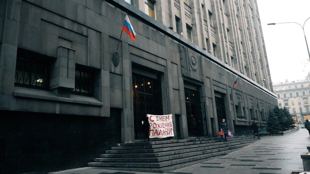 Марию Алехину и двух фотографов, задержанных из-за баннера «С днем рождения, палачи!», оставляют на ночь в ОВД