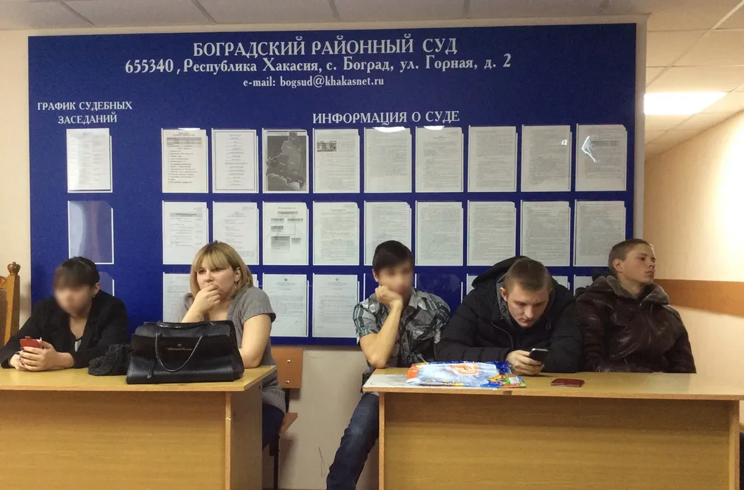 13 декабря, утро, Хакасия, село Боград, унылый двухэтажный барак. Его делят райсуд и пенсионный фонд. Сейфовые двери, металлодетектор на входе, мантии, мундиры. На стенде — информация о Боградском райсуде. Его электронная почта до «собаки»: bogsud. Под стендом — неудобный, но богатый деревянный стул, на спинке вырезан с мельчайшими деталями двуглавый орел. «Зэковская работа, — поясняет пристав, — на нем сидят за отдельную плату, сейчас по камерам посмотрю, сколько времени вы на нем уже». Шутка.