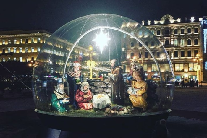 У Казанского собора установили рождественскую инсталляцию с Девой Марией и Иисусом