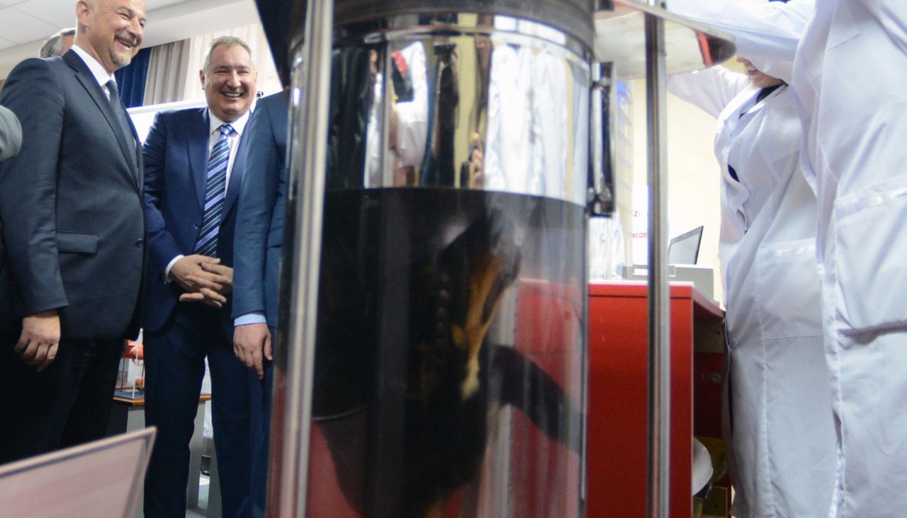 Во время визита Рогозина и президента Сербии Александра Вучича в Фонд перспективных исследований им показали жидкость, насыщенную кислородом, которая проникает в легкие и позволяет дышать. Чтобы продемонстрировать ее эффективность, сотрудник фонда взял таксу и засунул ее в резервуар с жидкостью. Животное сопротивлялось, но человек в белом халате погрузил собаку в жидкость и несколько десятков секунд удерживал ее в резервуаре. Собака все это время пыталась выбраться.