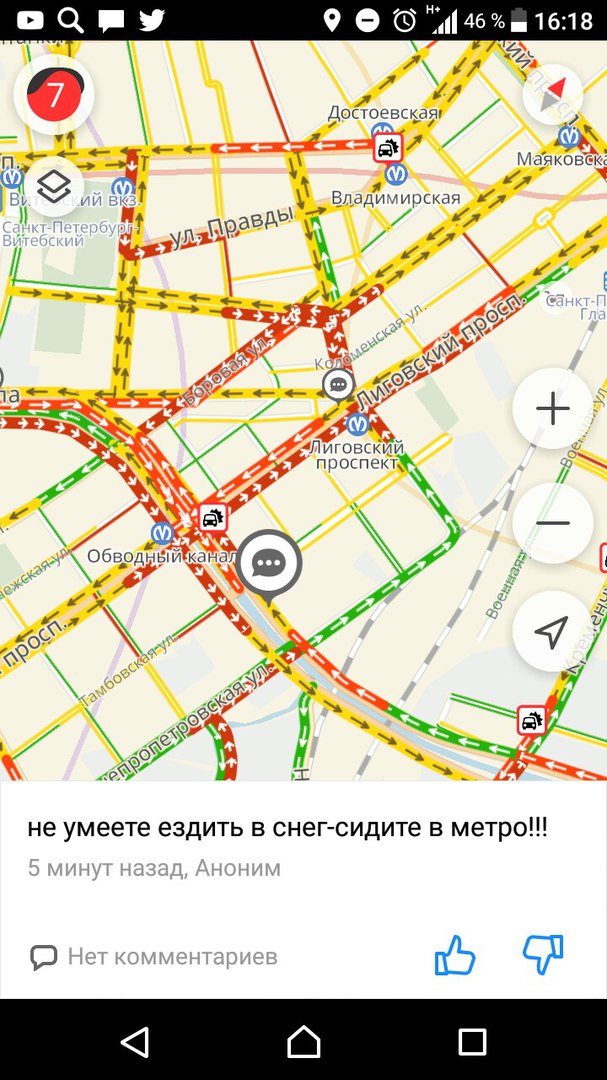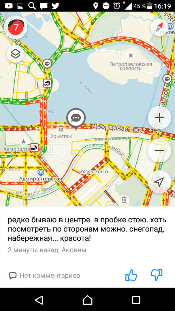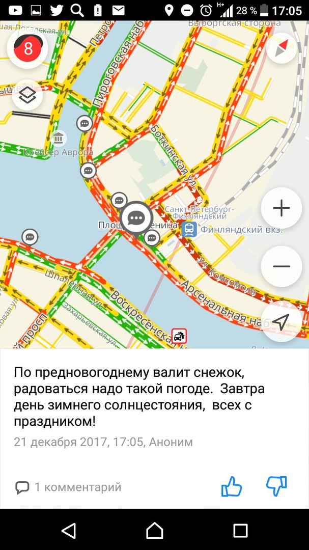 В четверг, 21 декабря, из-за гололедицы и снега, местами достигавшего 15 сантиметров, на дорогах в центре Петербурга образовались сильные пробки. К 18:00 они достигли 9 баллов.