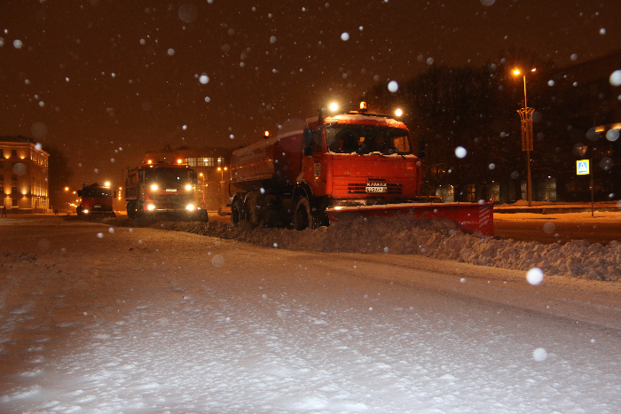 По данным комитета по благоустройству, за 9 часов беспрерывного выпадения осадков на улицы города опустилось 8–10 см снега, для уборки на улицы вывели 800 спецмашин.