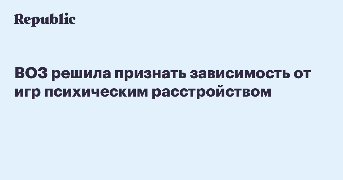 «Специалистам необходимо признать, что игровая зависимость может привести к серьезным последствиям для здоровья. Большинство людей, играющих в видеоигры, не страдают зависимостью, как и большинство употребляющих алкоголь не являются алкоголиками. Но тем не менее, в определенных обстоятельствах, чрезмерное увлечение играми может приводить к неблагоприятным последствиям», – заявил изданию эксперт ВОЗ Владимир Позняк.