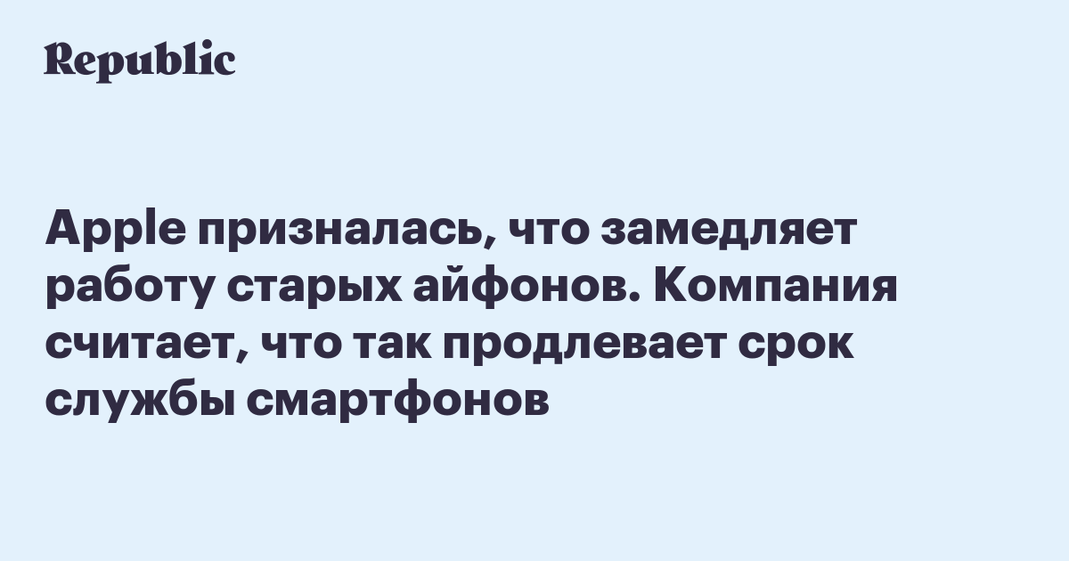 Apple призналась, что замедляет работу старых айфонов. Компания считает, что так продлевает срок службы смартфонов