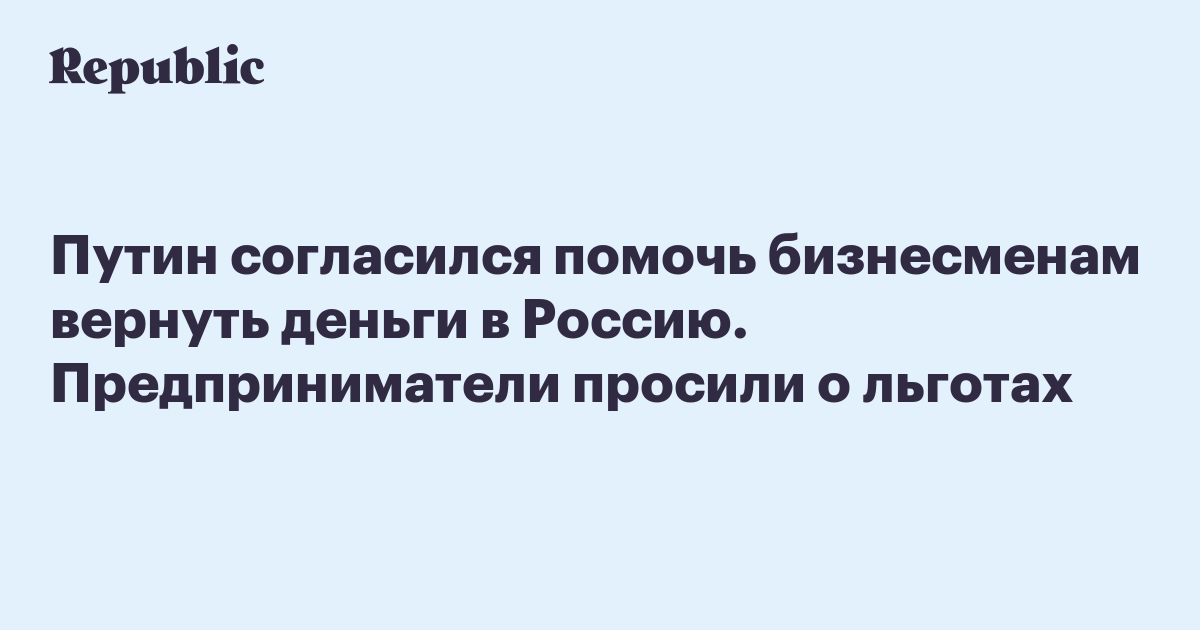 Путин согласился помочь бизнесменам вернуть деньги в Россию. Предприниматели просили о льготах