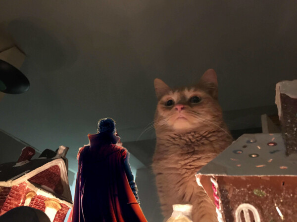 21 декабря пользователь форума Reddit под ником dabaers поделился снимком своего кота — тот стоял возле игрушечного рождественского городка с Санта-Клаусом. Из-за ракурса фотографии казалось, что животное угрожающе нависло над «поселением».
