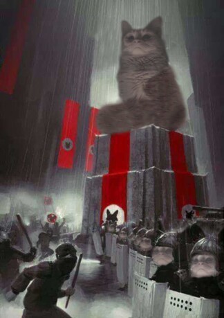 Кадр быстро стал основой для «битвы фотожаб» на Reddit. Комментаторы отметили, что кот мог бы заменить многих злодеев в фильмах, играх, книгах и исторических событиях.