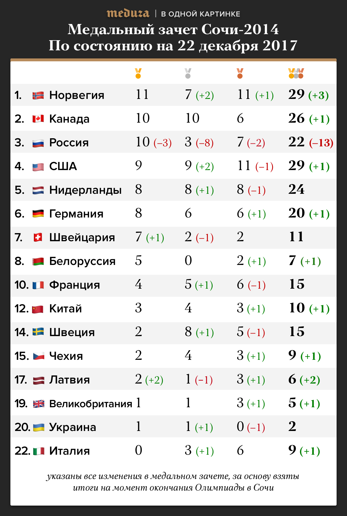 Еще минус две серебряных. Сколько медалей Сочи-2014 потеряла Россия из-за допинга?