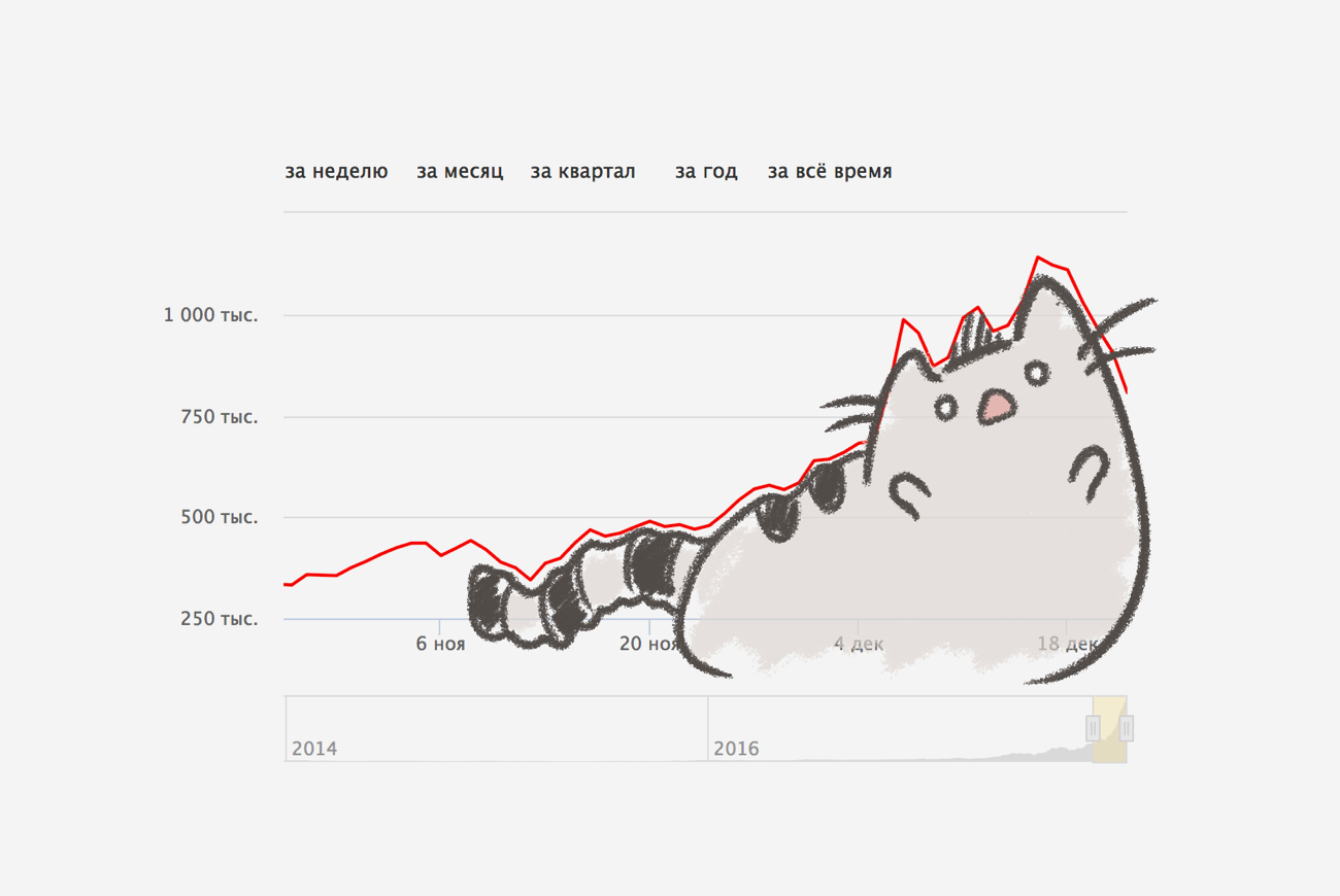 «Медуза» предлагает всем — и владельцам биткоинов, и тем, кто не успел купить их по низкой цене и теперь злорадствует над первыми, — успокоиться. Ведь график теперь похож на кошку Пушин.