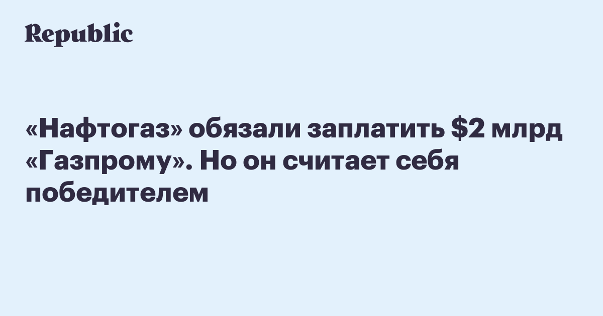 «Нафтогаз», таким образом, обязали выплатить «Газпрому» $2 млрд задолженности за газ. Украина также должна с 2018 года отбирать и оплачивать 5 млрд кубометров газа.