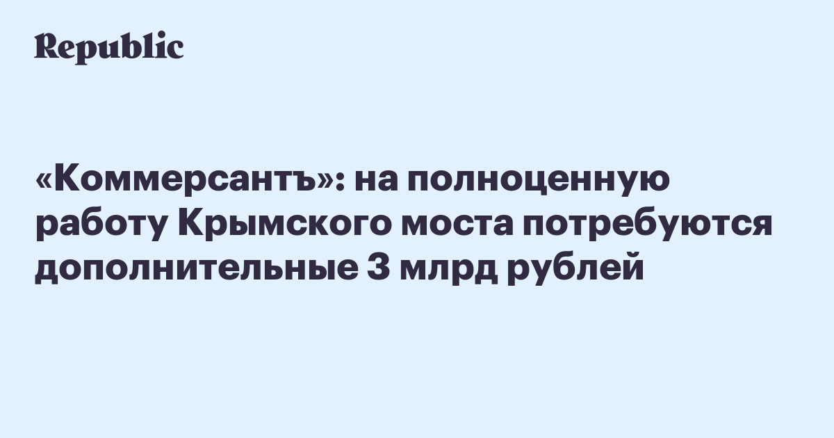 «Коммерсантъ»: на полноценную работу Крымского моста потребуются дополнительные 3 млрд рублей