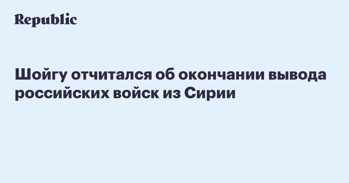 Министр обороны Сергей Шойгу доложил президенту России Владимиру Путину о том, что приказ о выводе российского контингента из Сирии выполнен, сообщает «Интерфакс».