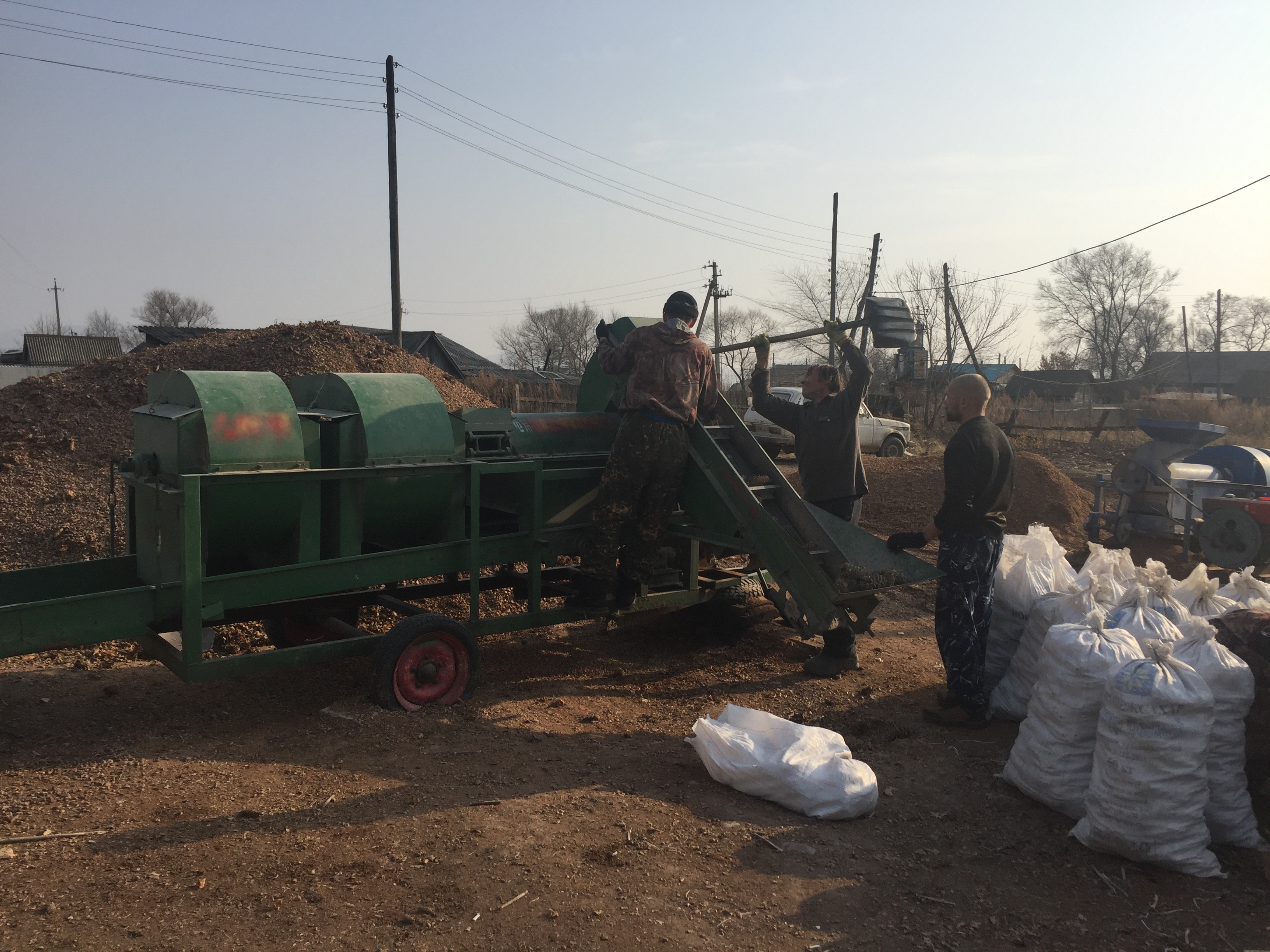 200 км от Владивостока. Здесь начинается уссурийская тайга: с тиграми, медведями и кедрами. Тишину маленького села нарушает грохот работающей мельницы для ореха. Группа сборщиков только что вернулась из леса и обрабатывает "улов": 40 мешков шишки за один день. Из этого получится примерно семь мешков орехов. На вопрос, куда этот орех пойдет, отвечают – "для личного пользования".