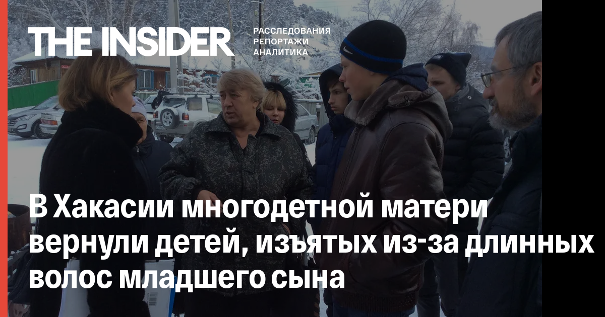 В Хакасии многодетной матери Любови Лицегевич вернули приемных детей, которых изъяли из-за жалобы воспитательницы на длинные волосы младшего сына. Как передает «Дождь», об этом сообщил главный редактор интернет-издания «Новый фокус» Михаил Афанасьев.
