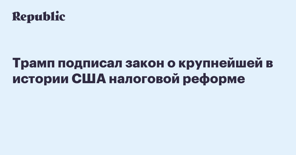Трамп отметил, что налоговая реформа – крупнейшая в истории страны, и она поможет 95% населения сократить налоговые выплаты. Как ожидается, реформа обойдется американскому бюджету в $1,5 трлн за десять лет – именно настолько за это время возрастет сумма государственного долга.