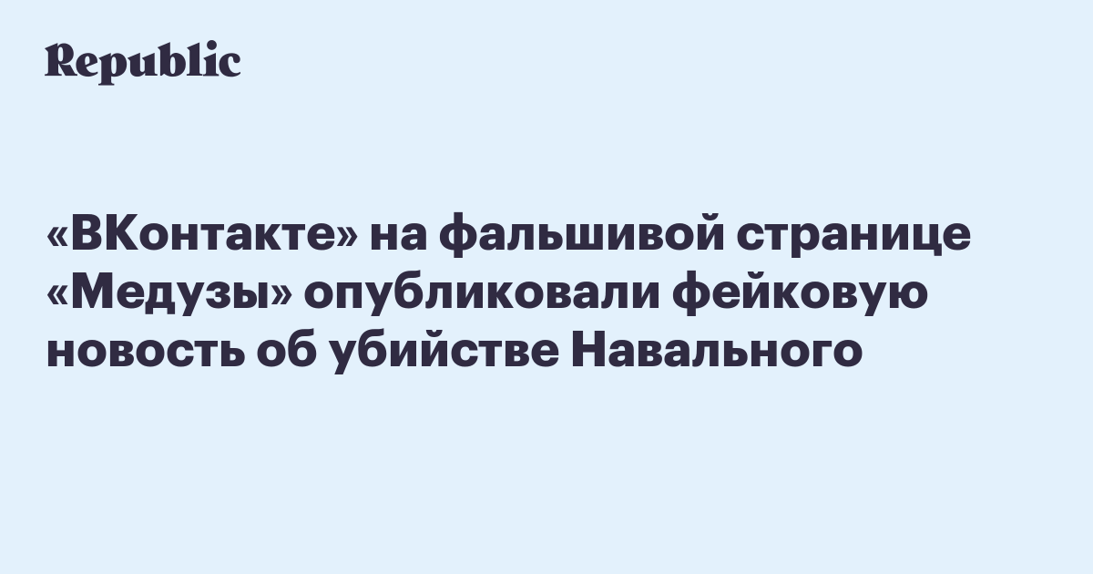 «ВКонтакте» на фальшивой странице «Медузы» опубликовали фейковую новость об убийстве Навального