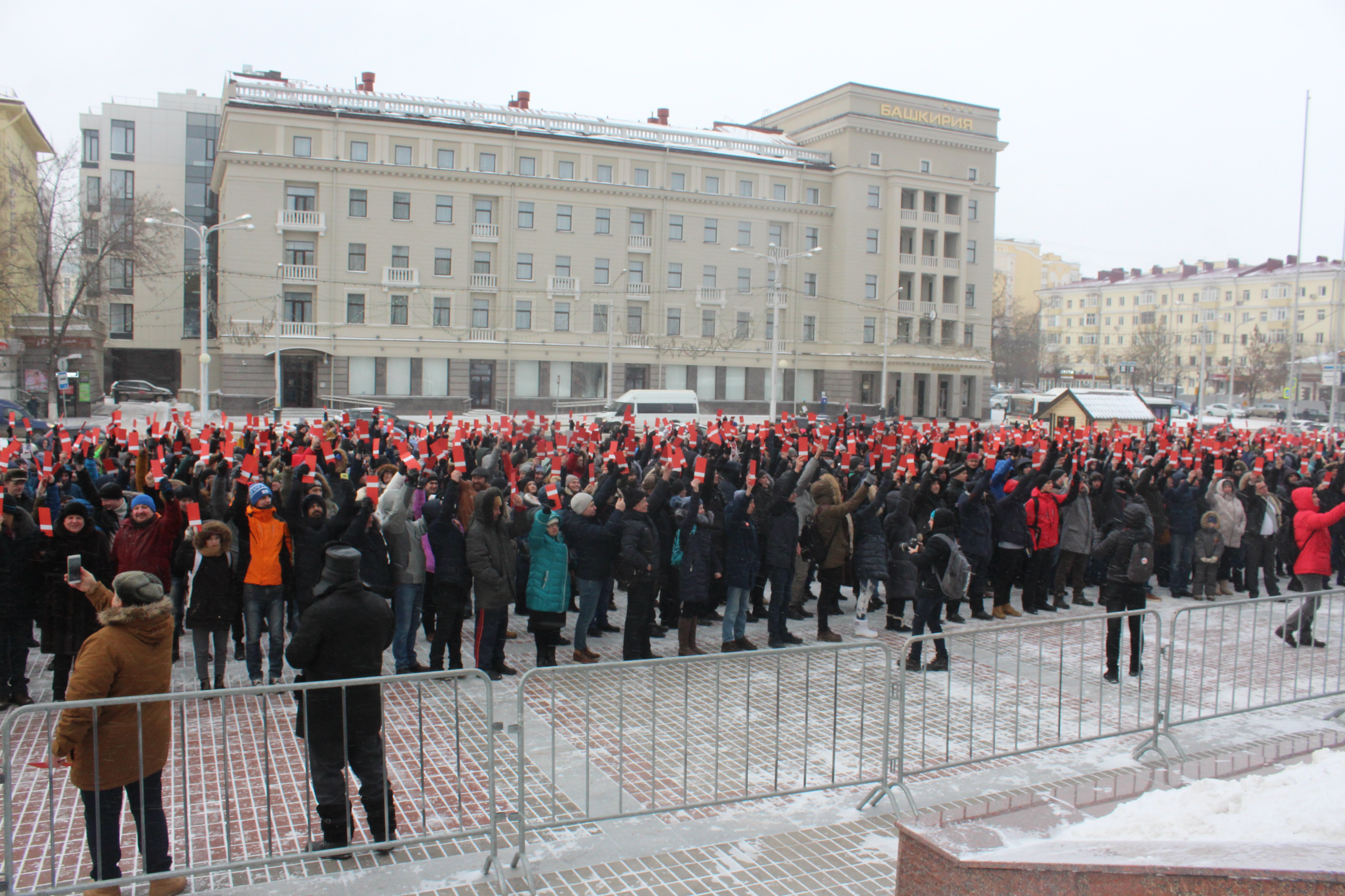 Организаторы решили не использовать на собрании агитационную атрибутику и звукоусиливающую аппаратуру (напомним, что несколько дней назад представители УВД Уфы, узнав о собрании, зачитали руководителю уфимского штаба Навального Лилии Чанышевой "предупреждение о недопустимости нарушения законодательства о публичных мероприятиях"). Поскольку на площади собралось более 800 человек, ведущая собрания Лилия Чанышева громко зачитывала каждую фразу протокола собрания, а все участники хором повторяли за ней все формулировки.