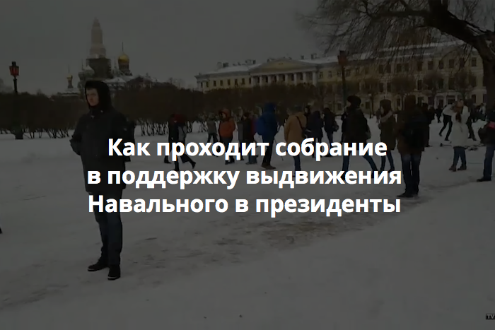 В воскресенье, 24 декабря, на Марсовом поле в Петербурге проходит собрание группы избирателей в поддержку выдвижения Алексея Навального кандидатом в президенты. После регистраций пройдет голосование.