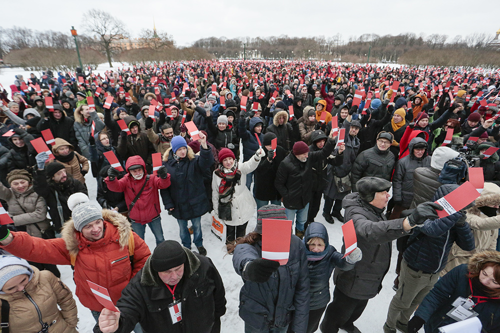 В воскресенье на Марсовом поле прошло собрание в поддержку выдвижения Навального в президенты. На него пришли около 2 тысяч петербуржцев. По итогам голосования за выдвижение высказались 1797 человек.