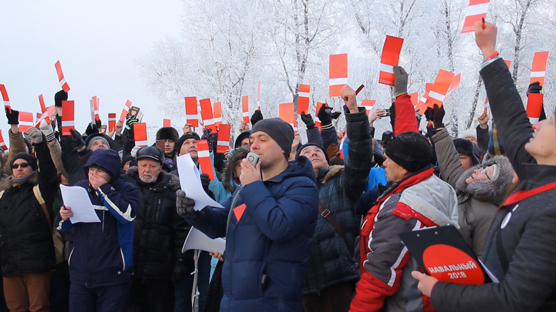 Первыми сегодня в президенты России Алексея Навального выдвинули жители Сибири и Дальнего Востока. Несмотря на декабрьский мороз, во всех городах пришло гораздо больше людей, чем было заготовлено мандатов для голосования.
