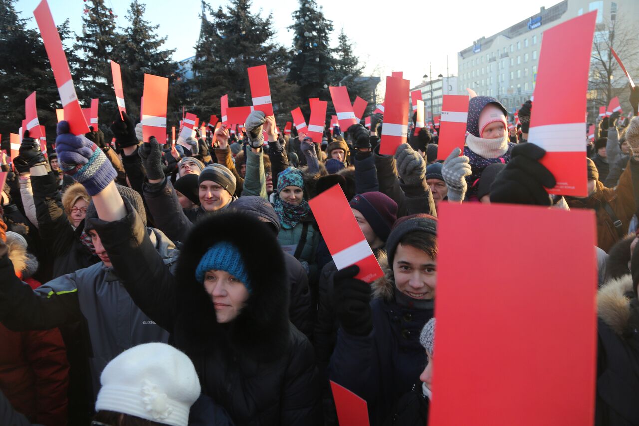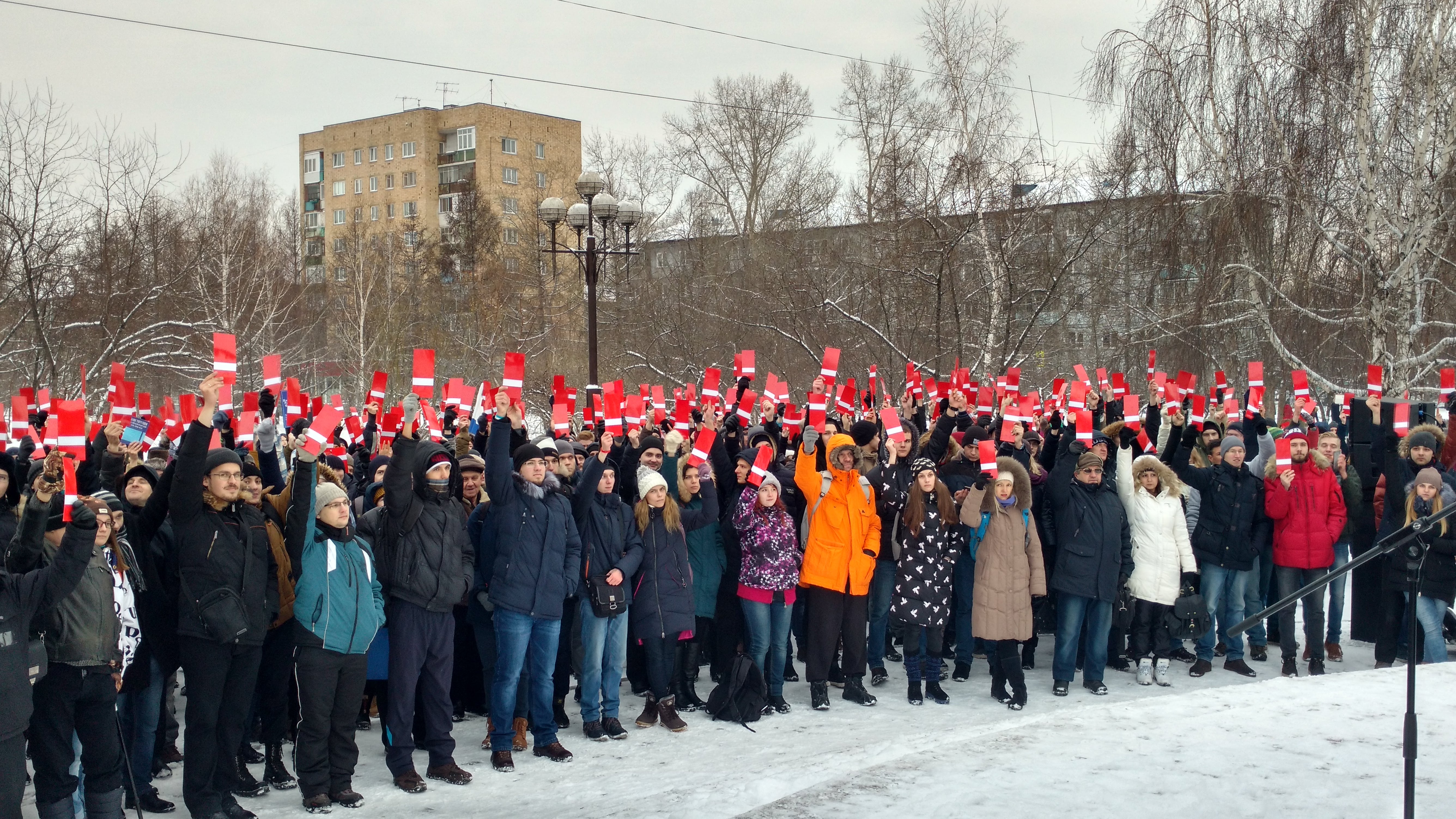 В Красноярске поддержать выдвижение Алексея Навального на выборах президента собралось 630 его сторонников. Мероприятие было согласовано с краевым избиркомом и представителями МВД.