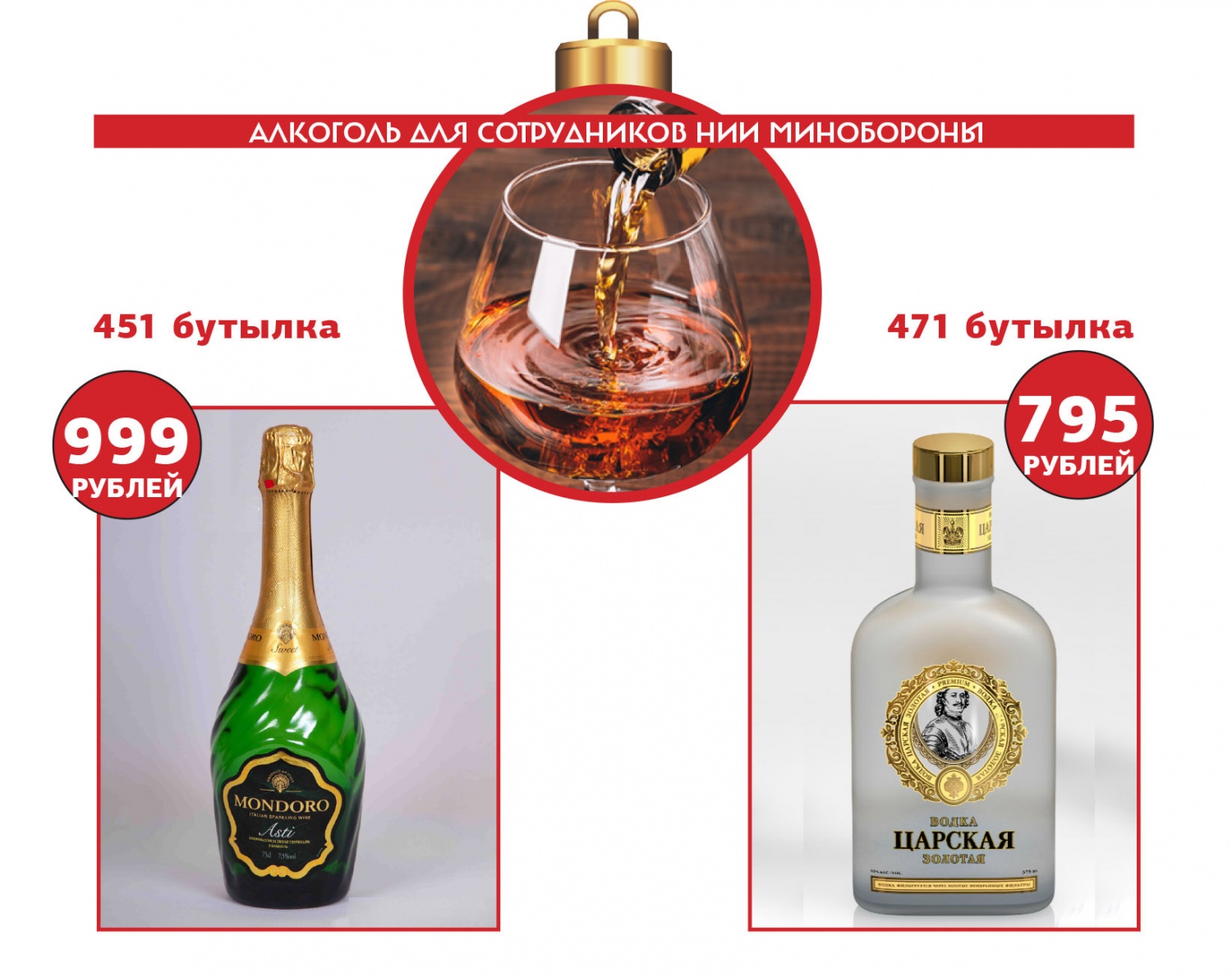 Не обошлось без алкогольных подарков. Таким выбором, впрочем, отличился всего один заказчик — 25-й Государственный научно-исследовательский институт химмотологии Минобороны, разрабатывающий нанотопливо для новой военной техники. В списке закупок института помимо 129 детских мягких игрушек «Шериф», 500 банок кофе Bushido Kodo, 655 упаковок чая Maitre, 655 коробок конфет «Рафаэлло», 451 бутылка «Киндзмараули» по 540 руб. за шт., 471 бутылка «Царской водки» по 795 руб., 204 бутылки полусладкого шампанского «Абрау-Дюрсо» по 354 руб. и 451 бутылка «Асти Мондоро» по 999 руб.