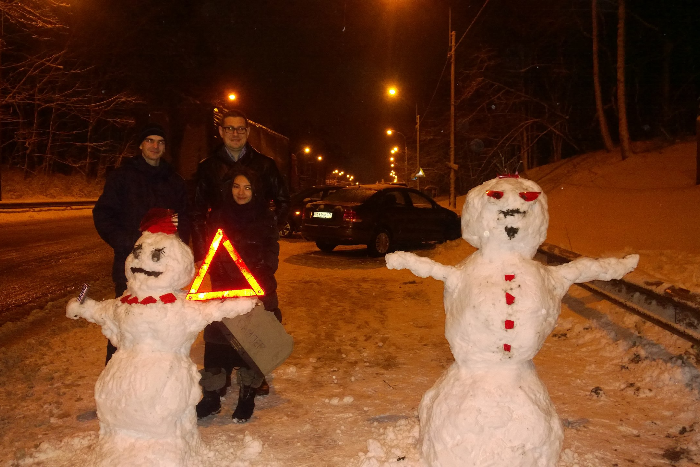 Петербуржцы слепили снеговиков, пока ждали ГИБДД после аварии