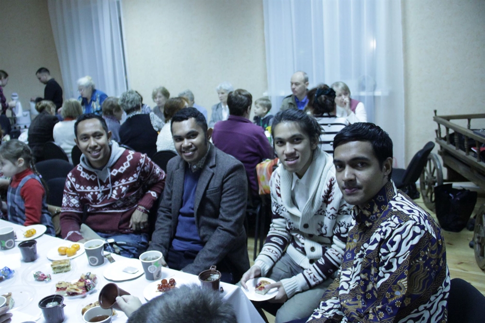 Службу провел пастор Виталий Моор. Затем члены его общины, среди которых индонезийцы—студенты-лютеране — отправились в Российско-Немецкий дом, где продолжили праздновать Рождество с чаепитием и концертом.
