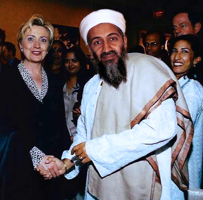 Официальный представитель МИДа России Мария Захарова в ноябре 2017-го рассказала в эфире канала «Россия-1» о том, что основатель запрещенной в России и в мире террористической группировки «Аль-Каида»** Осама бен Ладен бывал на приеме в Белом доме. «Вспомните эти фантастические, феерические фотографии, как в Белом доме принимали бен Ладена. Это же классический лоббизм в самом настоящем смысле слова», — возмущалась Захарова на всю многомиллионную телеаудиторию. В качестве иллюстрации к ее словам было продемонстрировано фото, где бывшая госсекретарь США (а также соперница Дональда Трампа на выборах) Хиллари Клинтон жмет руку террористу № 1.