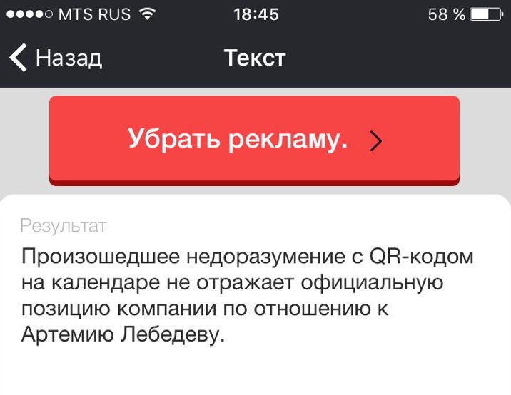 Компания «Газпром нефть» прокомментировала новость про QR-код с оскорблением Артемия Лебедева в своем новогоднем календаре, прислав пресс-релиз, зашифрованный в QR-коде.