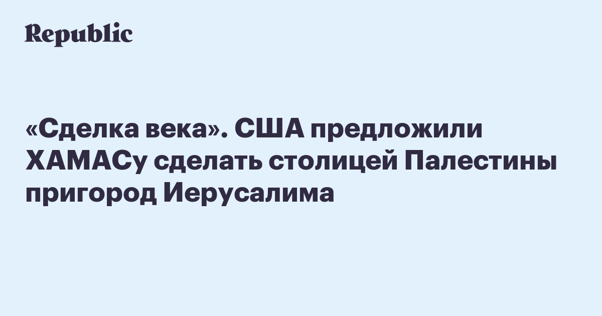 Администрация президента США выступает с предложением объявить столицей Палестины Абу-Дис, пригород Иерусалима. Информация об этом, сообщает Anadolu, была доведена до палестинского движения ХАМАС.