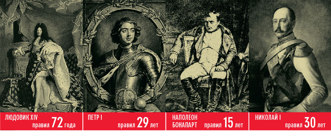 Скромнее стали и сроки правления. Единоличный протекторат Оливера Кромвеля, узурпировавшего власть после Английской революции, длился всего-то пять лет (1653–1658). Наполеон Бонапарт с момента переворота 18-го брюмера пробыл единоличным правителем Франции около 15 лет. Его племянник Луи Наполеон III, время которого стало символом расцвета коррупции и произвола «новых богатых» во Франции, находился у власти в общей сложности 22 года (1848–1870). В итоге дело кончилось первым приходом немцев в Париж.