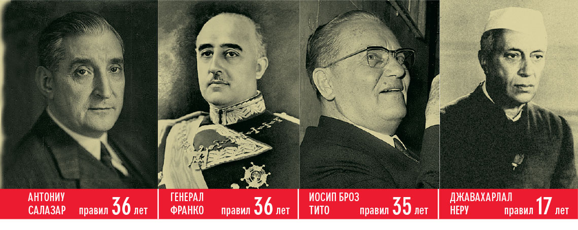 Уже в следующем столетии Гитлеру хватило 12 лет, чтобы довести Германию до самого чудовищного краха в своей истории. В Европе XX века дольше всех правили диктаторы Франко в Испании (1939–1975) и Салазар в Португалии (1932–1968) — по 36 лет каждый. Салазаровский режим, впрочем, недолго просуществовал и после ухода диктатора, пока в 1974 году не был свергнут в результате португальской «революции гвоздик». Столь же любимый некоторыми нашими либералами во власти генерал Пиночет правил Чили всего 16 лет, после чего покинул свой пост относительно добровольно.
