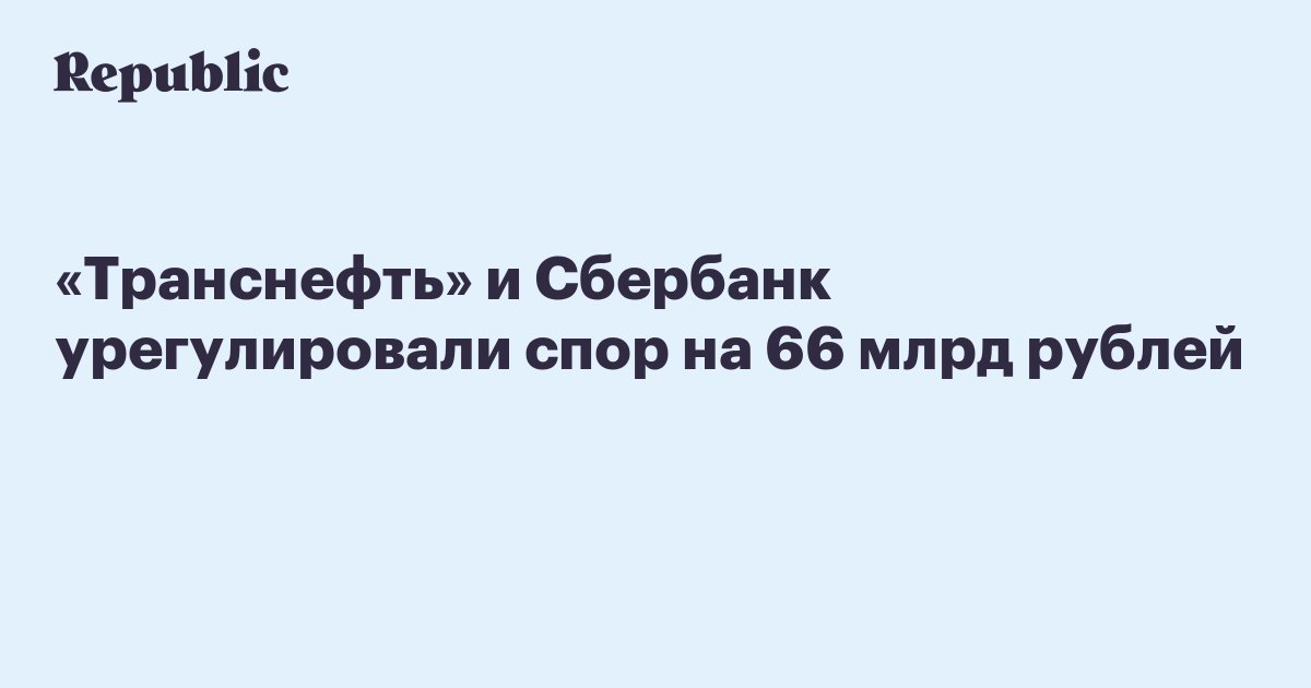 «Транснефть» и Сбербанк урегулировали спор на 66 млрд рублей