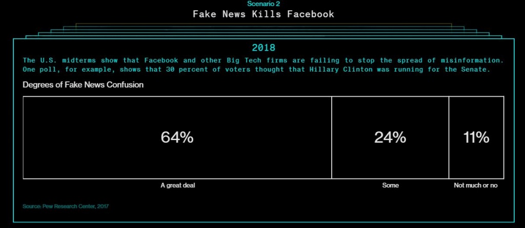 В 2018 году Facebook и другие крупные технические фирмы не могут остановить распространение дезинформации. В 2019 году Facebook нанимает тысячи подрядчиков, чтобы побороть подозрительный контент. Во всем мире правительства вынуждены следовать примеру России и захватывая «бот-фермы» как новое оружие в контрразведке. Выясняется, что почти половина трафика twitter происходит из таких «поддельных новостей».