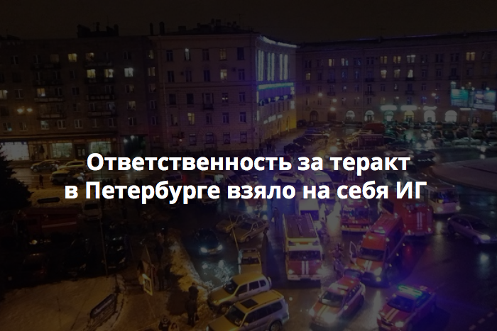 «Исламское государство», запрещенная в России террористическая организация, взяло на себя ответственность за теракт в Петербурге. Сообщается, что взрыв 27 декабря устроила связанная с ИГ группировка.