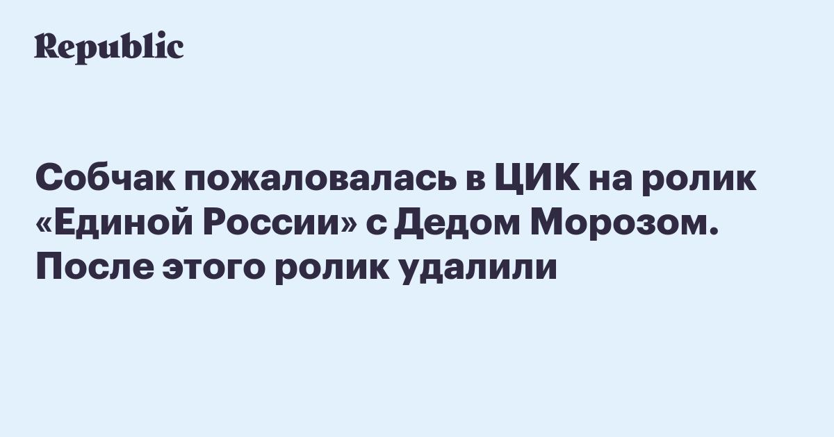 Предвыборный штаб Ксении Собчак подал жалобу в ЦИК на ролик «Единой России» с Дедом Морозом. После ее жалобы партия удалила видео со своего ютуб-канала (но оно осталось у других пользователей ютуба).