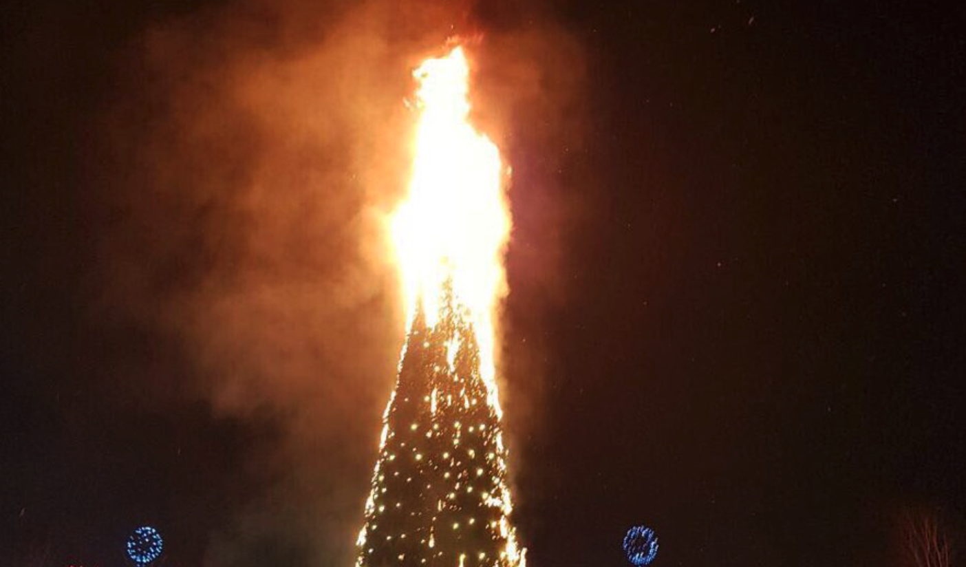 После возгорания конструкцию целиком охватило пламя. Елка сгорела полностью до каркаса.
