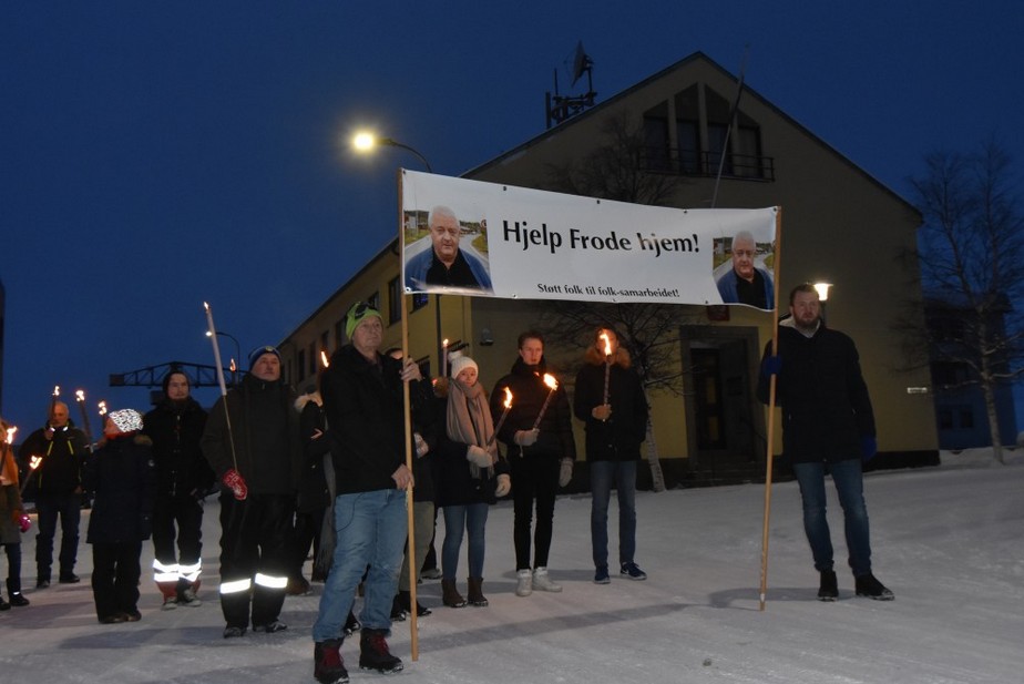 Около 450 норвежцев прошли с факелами и портретами Берга по Киркенесу. Лозунгом митингующих был призыв «Вернуть Фруде домой». Акцию организовала церковная община, в которой Фруде Берг был старостой. Киркенесцы начали сбор средств, которые отправят их земляку в следственный изолятор «Лефортово». Участникам митинга передали слова благодарности Берга, а норвежцы выразили надежду, что их правительство не подвергнет россиян ответным мерам и санкциям.