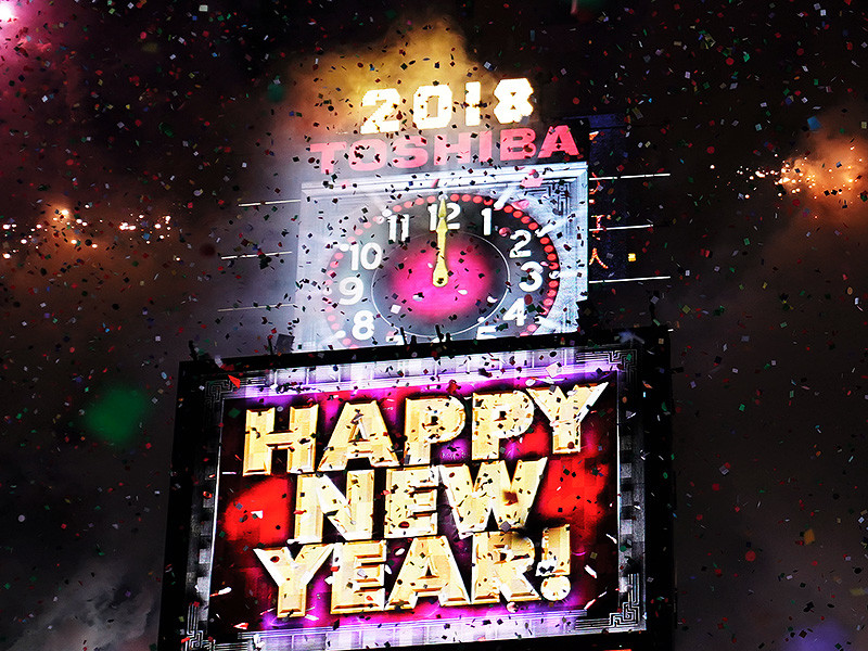 Кульминацией праздника стал спуск хрустального шара, который в США является одним из главных новогодних символов. В этом году шар диаметром 3,5 метра и весом 5,5 тонн выполнили из 2,7 тысяч хрустальных треугольников ирландские мастера. Основательница движения в защиту пострадавших от сексуальных домогательств Me too Тарана Бэрк нажала на кнопку, запустив медленное вращение шара вниз по шпилю одной из высоток. Шар достиг нижней точки в момент, когда по местному времени наступил новый 2018 год. В этот момент на Таймс-сквер по традиции зазвучала культовая песня "Нью-Йорк, Нью-Йорк" Фрэнка Синатры.