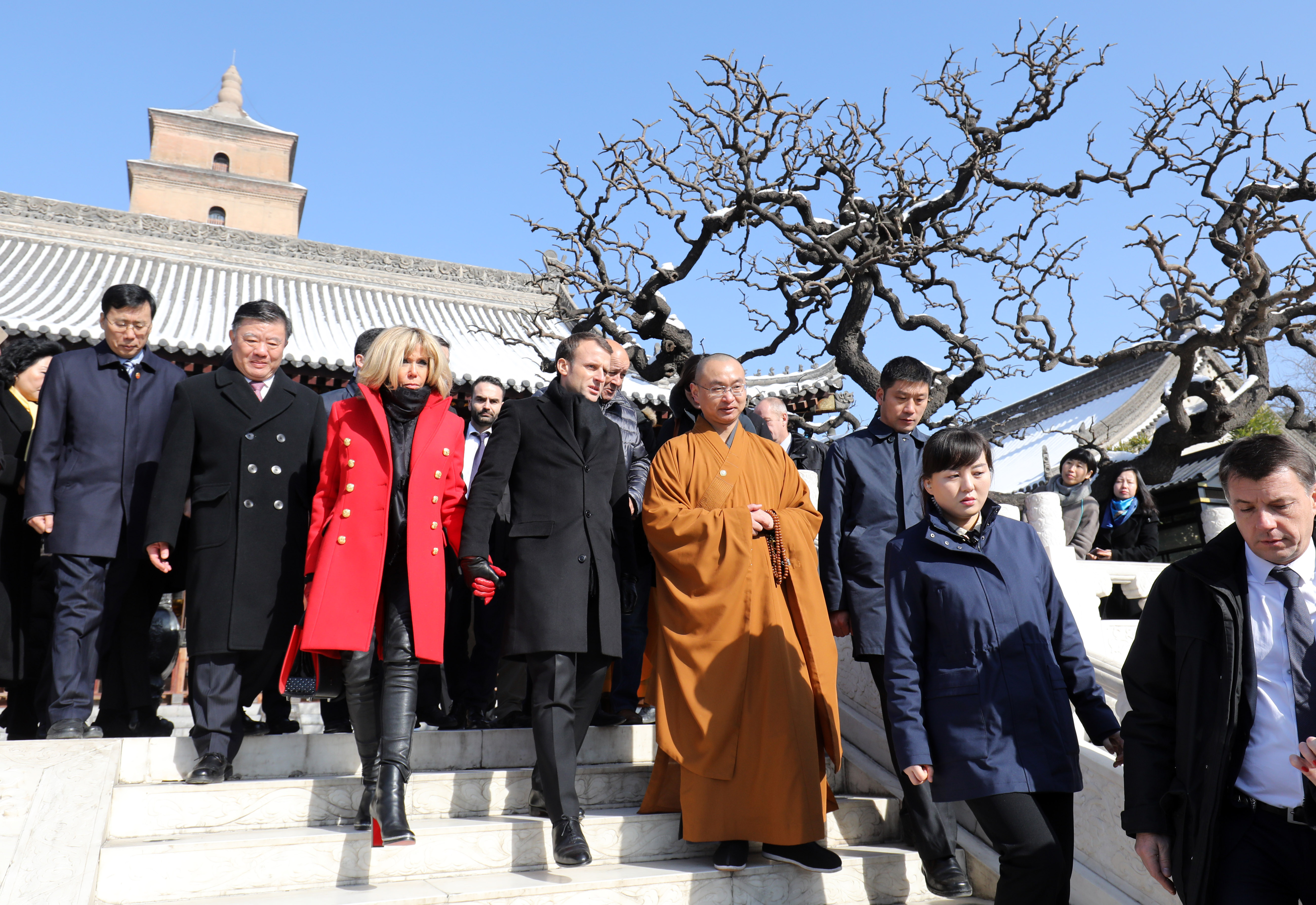 Макрон и его жена, Бриджит, 8 января посетили город Сиань, который известен знаменитыми терракотовыми воинами, армией из глины, состоящей из 8 тысяч фигур, созданных около 250 лет до нашей эры.
