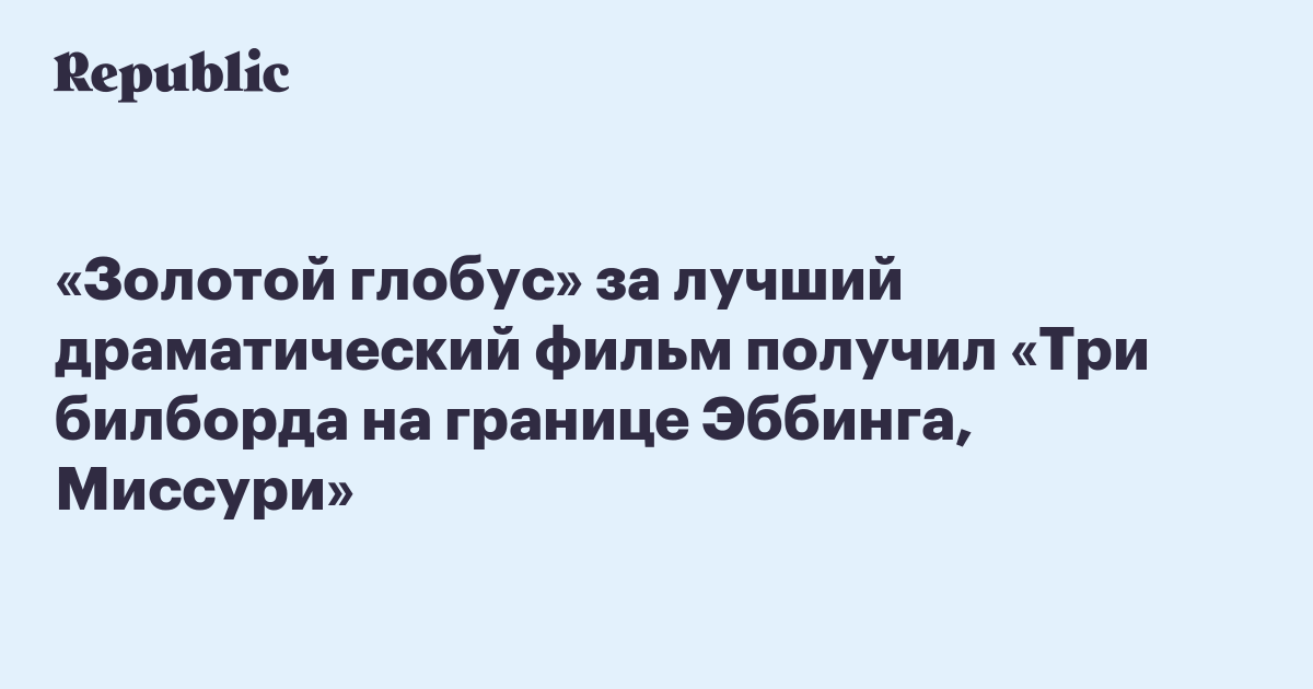 Картина Мартина Макдонаха «Три билборда на границе Эббинга, Миссури» признана лучшим драматическим фильмом года и удостоена «Золотого глобуса». Об этом сообщается в твиттере премии.
