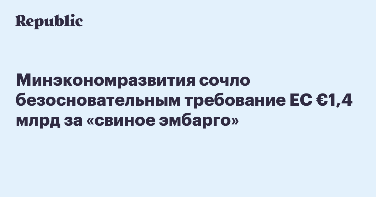 Минэкономразвития сочло безосновательным требование ЕС €1,4 млрд за «свиное эмбарго»