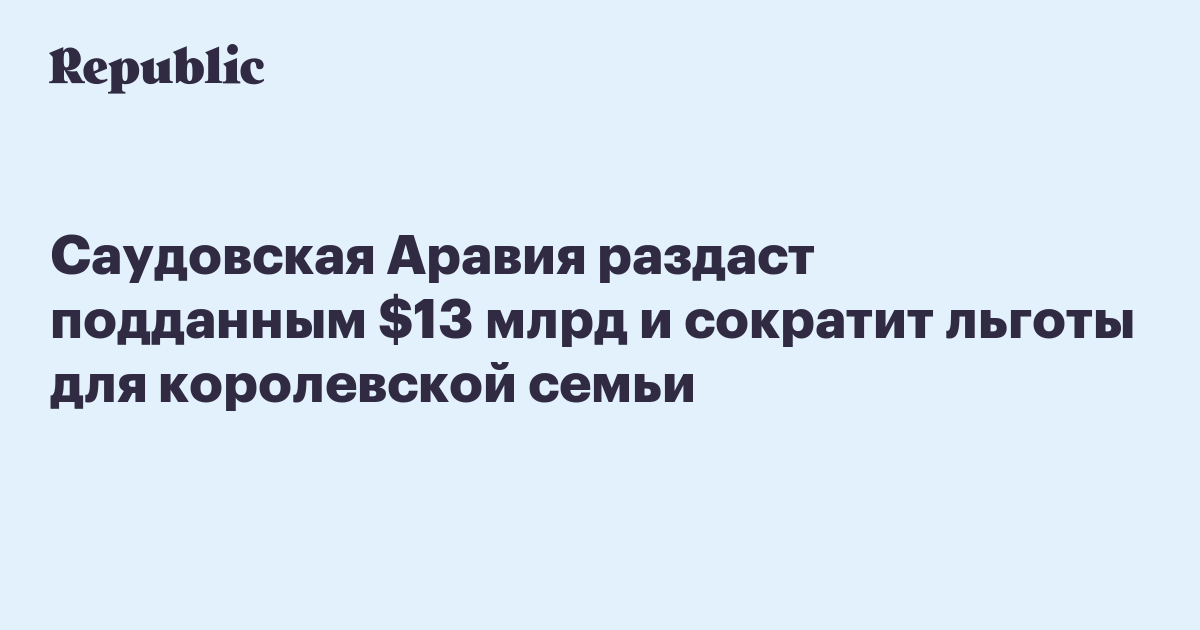 Саудовская Аравия раздаст подданным $13 млрд и сократит льготы для королевской семьи