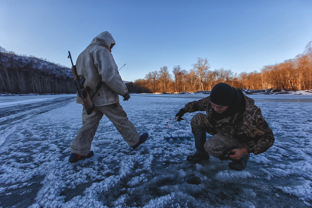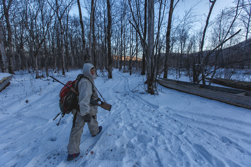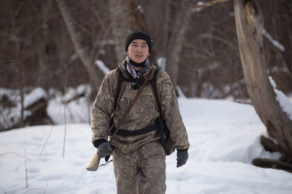 Никите Камандиге 20 лет, он представитель малочисленного коренного народа самаргинских удэгейцев, родился и вырос в Агзу. Пару лет назад уехал учиться на охотоведа в Уссурийск и теперь приезжает домой лишь два раза в году. 14 часов в автобусе из Владивостока до Тернея, затем пробиться на вертолет до Агзу – мест хватает не всем, поэтому необходимо с боем записываться заранее. После перелета в забитом трясущемся Ми-8 еще несколько километров на грузовичке родителей, и он дома.
