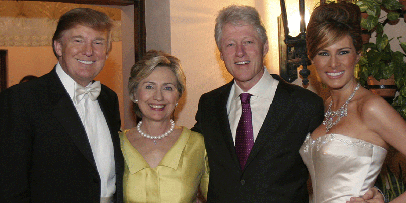 *45-й и 42-й президенты США, Трамп и Клинтон, с женами: рядом с Трампом — первая леди США, а потом главный соперник Трампа на выборах президента США 2016 года Хиллари Клинтон. Это 2005 год, третья свадьба Трампа — на нынешней первой леди США, а тогда 37-летней бывшей модели Мелании*Фото: indialivetoday.com