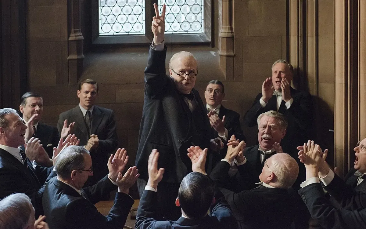 Над искусным гримом трудились знаменитые мастера Кацухиро Цудзи и Ивана Приморак. На разработку одной только маски для лица ушло полгода. Больше трех часов грима перед каждой съемкой. Но грим и искусственная тучность — лишь ключ, Олдман играет преображение ворчливого старика с взрывным характером в грандиозного политического лидера с лихорадочной энергией, прозорливостью и острым умом. Без смущения он мгновенно парирует изысканные нападки короля на еженедельных ритуальных встречах («Как вы научились пить и не пьянеть в течение дня?» — «Практика»). Дезавуирует политических оппонентов («Не перебивайте меня, когда я перебиваю вас!»). Пользуется всем богатством языка, чтобы доказать собственную правоту («Нельзя договориться с тигром, когда твоя голова у него в пасти»). В нужную минуту умеет повысить градус востребованного в военную эпоху энтузиазма: «Мы будем сражаться на морях и в океанах, мы будем защищать наш остров, чего бы это нам ни стоило, мы никогда не сдадимся!»